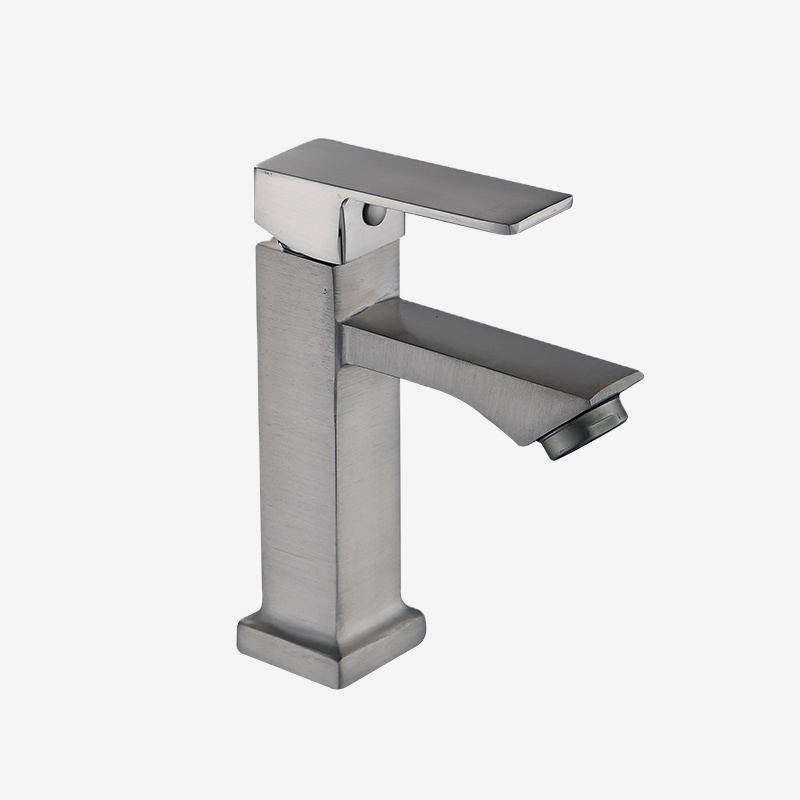 Grifo de lavabo cuadrado de acero inoxidable SUS201 con un solo mango