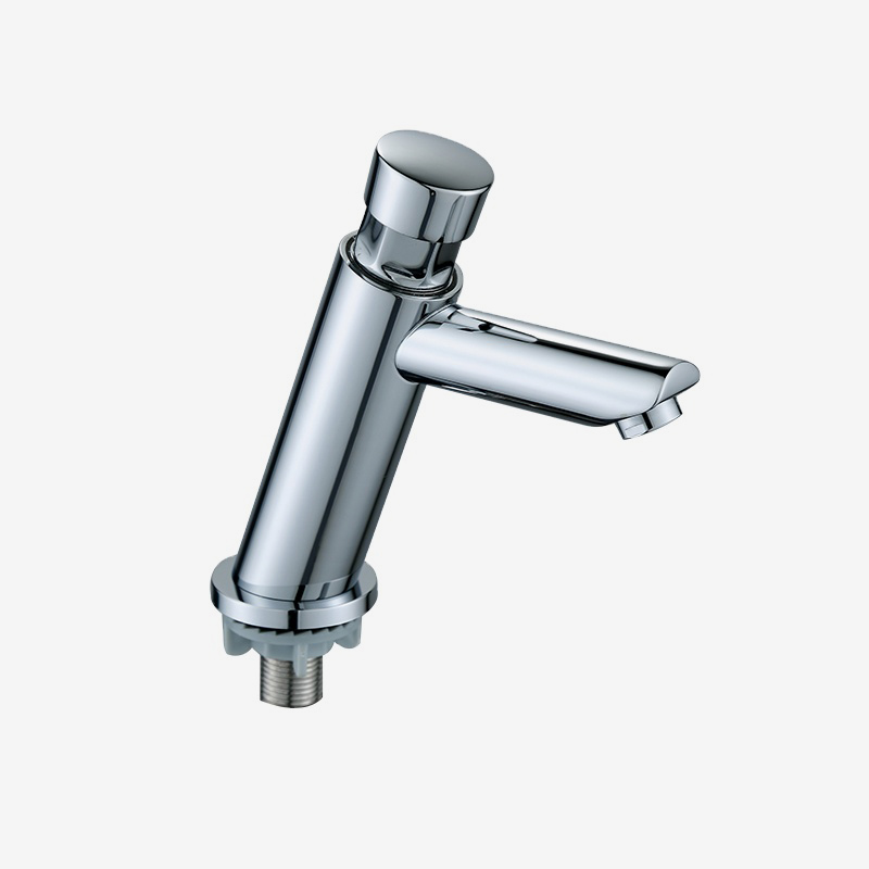 Grifo de lavabo de acero inoxidable 201 chapado en cromo, con retardo temporal y de solo frío